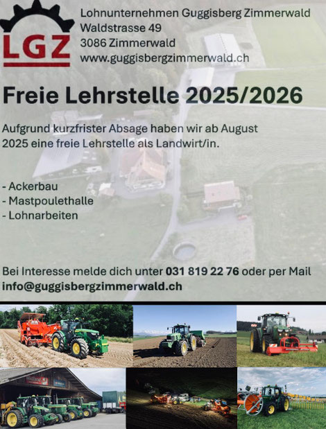 Wenn du Interesse hast, schick uns deine Bewerbungsunterlagen per Mail an info@guggisbergzimmerwald.ch oder per Post zu. Falls du Fragen hast, kannst du uns auch gerne telefonisch kontaktieren 031 819 22 76.